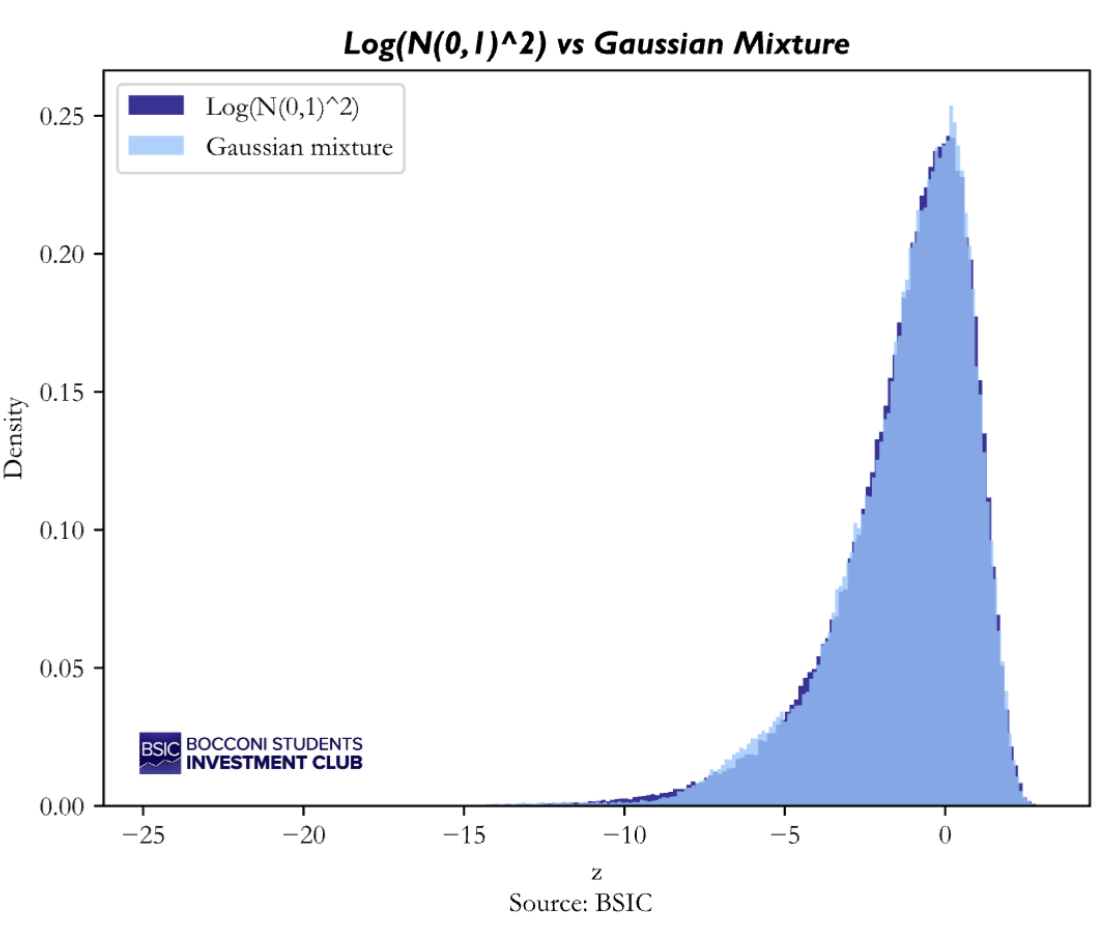 even flexible ones such as the Gaussians-mixture, struggle when financial returns display pronounced heavy tails. The misspecification propagates directly into incorrect volatility estimates. This highlights a fundamental limitation of parametric treatments of zt and motivates the exploration of non-parametric or semi-parametric alternatives that can adapt more effectively to the empirical distribution of financial returns.