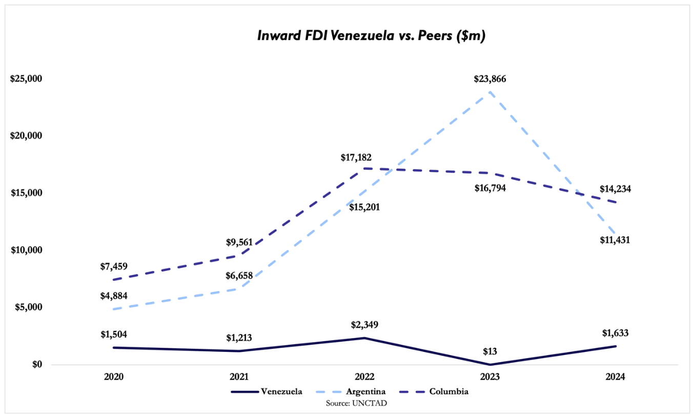 Overall, it is clear that Venezuela’s economic potential does not need to be limited to its oil sector. The country benefits from abundant natural resources, a strategic geographic position, and a relatively young, low-cost labor force. Hydroelectric capacity and widespread access to electricity also provide a potential industrial base, even if infrastructure requires substantial work. Once again, however, a history of misguided policy decisions means that the potential remains largely latent. Mining is underdeveloped, agriculture operates below potential, and industry remains vulnerable to fluctuations in demand and import competition. These sectors might appear as investment opportunities with large margins for growth, but historical factors which led to the current state of the economy persist to this day. Mostly, macroeconomic instability and uncertainty over the political regime. Inflation remains extremely high, exchange-rate dynamics are unstable, and there are significant foreign-currency shortages for what concerns the macroeconomic conditions; at the same time, legal uncertainty, inconsistent regulatory frameworks, and a history of expropriations have undermined investor confidence. On top of this, Venezuela ranks among the weakest globally on corruption and economic freedom indicators. This has led to a sharp decline in foreign direct investments, with many multinational companies that exited the market or scaled back operations.