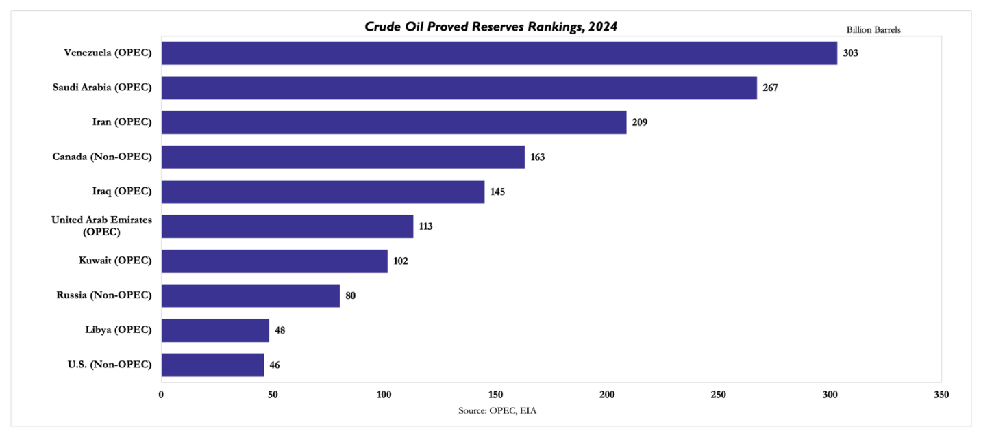 Even at reduced output, these barrels still matter because heavy, sour crude has been relatively tight in recent years, particularly for refineries configured to process it, especially those on the U.S. Gulf Coast. This creates a structural demand niche that Venezuela is still positioned to serve, despite its lower production levels. Beyond refinery-level demand, Venezuela’s current production is too low to set the global oil balance. However, its reserve base still matters for Atlantic Basin heavy-crude supply and refinery economics, while also preserving strategic leverage for U.S. policymakers over future export flows. In a market still sensitive to OPEC supply discipline and to shipping risk through the Strait of Hormuz, a large heavy-crude reserve base outside the Gulf retains strategic value as a potential source of supply diversification. This disconnect between large reserves and limited output makes production dynamics the key variable in assessing Venezuela’s actual role in the oil market.