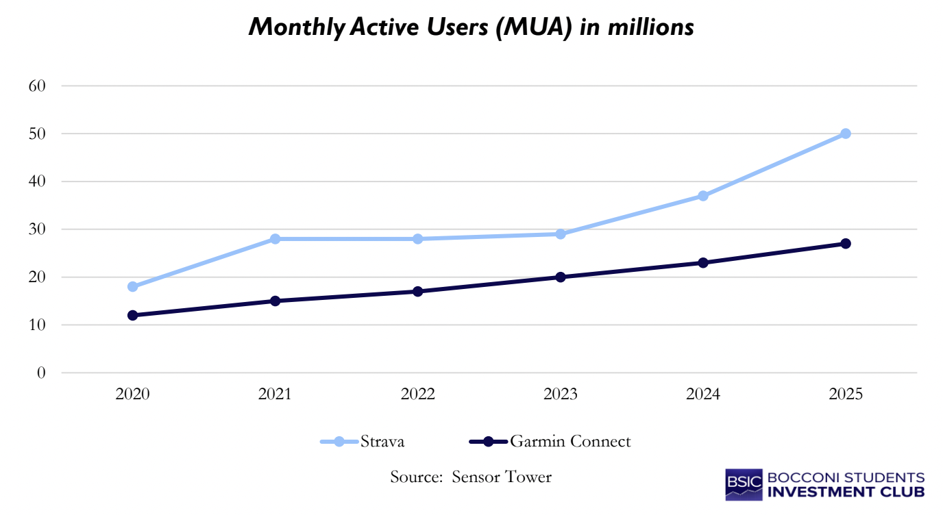 Garmin continues to leverage its technical roots to sustain a competitive advantage in both performance and precision. In 2024 it invested $994m in R&D across 39 facilities worldwide. Its focus on satellite connectivity through inReach devices (the first personal satellite communicator on the market), combined with solar charging and adaptive training algorithms, reinforces Garmin’s positioning as a provider of integrated performance and safety technology, rather than merely a smartwatch manufacturer. At the same time, the company is expanding its software and subscription-based services, primarily through the Garmin Connect ecosystem that enables users to sync, visualize, and analyze their health and performance data. With more than 300 million products shipped since its foundation (18 million in 2024), and 89 locations across 35 countries, Garmin’s evolution from a GPS manufacturer to a data-driven health technology company reflects the broader industry tendency of convergence between wearables, analytics, and medical research.
