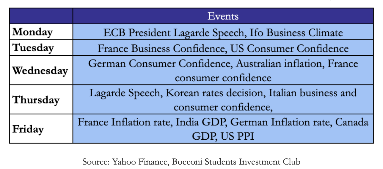 The upcoming week will be event heavy across major economies. We begin on Monday with remarks from ECB President Christine Lagarde. Tuesday will focus on confidence indicators, including France Business Confidence and US Consumer Confidence data. Midweek brings further sentiment readings, with German Consumer Confidence, Australian inflation data, and France Consumer Confidence scheduled for Wednesday. On Thursday, markets will digest another speech from Lagarde, alongside the Korean rate decision and Italian business and consumer confidence figures. The week concludes with a busy Friday featuring key macro releases, including France’s inflation rate, India and Canada GDP figures, Germany’s inflation reading, and US PPI data.