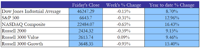 For the week, however, the S&P 500 still slipped 0.3%, the Nasdaq fell 0.7%, and the Dow edged down 0.1%. This slight decline got added on top of losses in the prior week, leaving the technology heavy Nasdaq in particular struggling to regain momentum after its previous late-summer highs. The technology sector remained under pressure as higher yields undermined growth stocks, while industrials and financials offered more stability. Energy companies also benefitted from commodities prices rising, as crude futures logged their largest weekly gain in about three months, with Brent and WTI both advancing on supply concerns tied to Russian fuel export cuts and U.S. inventory drawdowns.