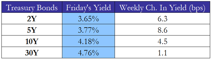 Shorter-dated yields behaved similarly. The 2-year Treasury yield, highly sensitive to policy expectations, ended the week around 3.66%, while at the long end the 30-year yield reached 4.75%, reinforcing a mild steepening of the curve. The spread between the 10-year and 2-year yields increased to about 0.57%, a notable change after months of inversion.