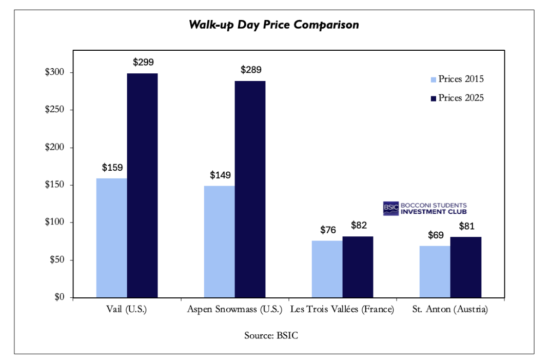A skier driving two hours from Denver into the Rockies will likely encounter a striking number at the ticket window, with a single day lift ticket at a major U.S. destination resort frequently exceeding $250 and approaching or surpassing $300 in peak periods. In contrast, a day pass in the French or Austrian Alps is typically priced at approximately €70. American consumers may pay roughly four to five times more for seemingly the same product, even after currency conversion, a ski pass providing access to lifts and terrain. This divergence is not a result of snow quality, infrastructure conditions, or climate risk. Both regions operate in capital-intensive, weather-dependent environments with high fixed costs and short revenue seasons. The pricing gap is rather reflected by differences in ownership structures, market concentration, geographic competition, and contract design. The “pricing paradox” is institutional rather than operational.
