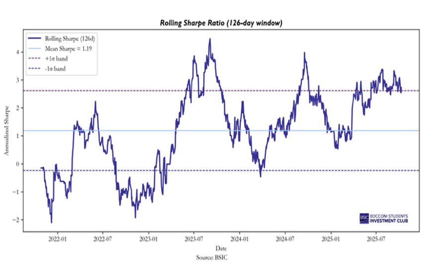 The relatively low win rate of 36 percent reflects the inherently contrarian nature of the rule: profits depend on a limited number of large mean reversion episodes rather than on frequent small gains. The average holding period of about four trading days and an annualized turnover of roughly forty signal a high frequency implementation that reacts quickly to deviations but also incurs substantial position turnover.