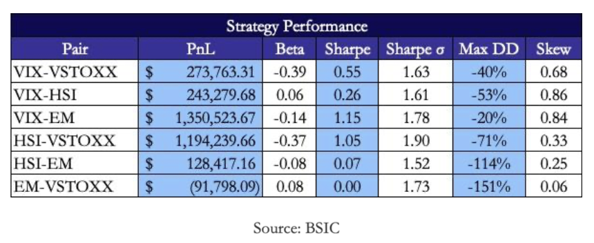 In summary, while the results support the presence of profitable mean-reversion dynamics across volatility index spreads, they should be interpreted within the constraints of available data. Nonetheless, our findings suggest that cross-market volatility spreads remain a promising area to continue looking for opportunities in the realm of systematic strategy, especially between highly integrated developed markets.