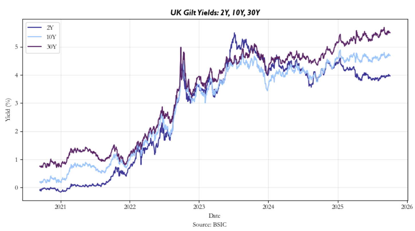 Bond markets across major economies-including France, Japan and the UK have undergone notable shifts in recent weeks as investors reassess fiscal uncertainty, inflation, rates trajectories, and political turmoil. While the recent election of new prime minister Sanae Takaichi in Japan is currently capturing markets participant’s attention, the ongoing fiscal and political chaos in the UK is a story that has caused major volatility in markets over the summer and still seems to be far from over. In this article we will take a closer look at what has and happened in the UK and provide an outlook for major events and factors that will potentially have a significant impact on markets in the near future. We will examine how Gilt markets have evolved since the 2022 crisis, take a look at the UK economy and dive deeper into the upcoming autumn budget in November — including our view on how we would position ourselves for these turbulent macro developments.